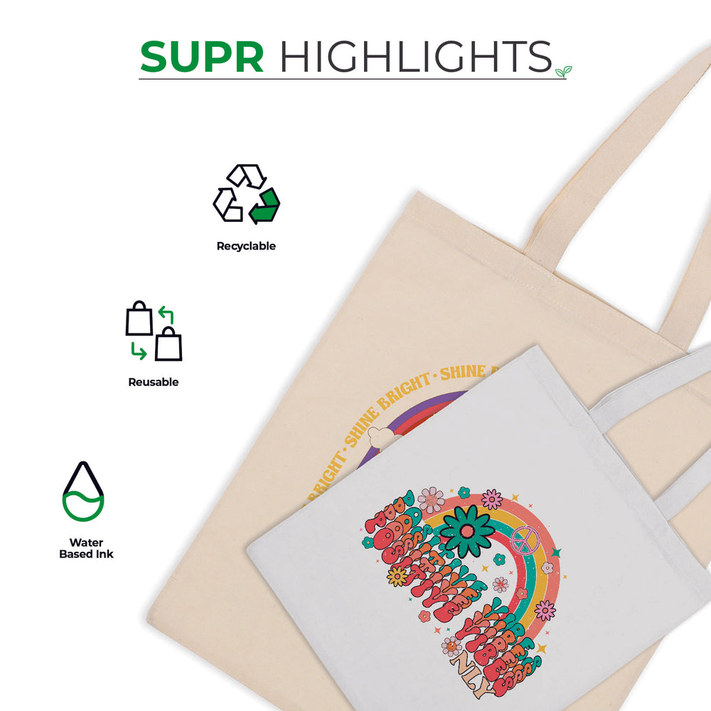 • Supr Usage: Our reusable tote bags are customizable to increase your branding & are ideal for packaging, marketing or gifting.