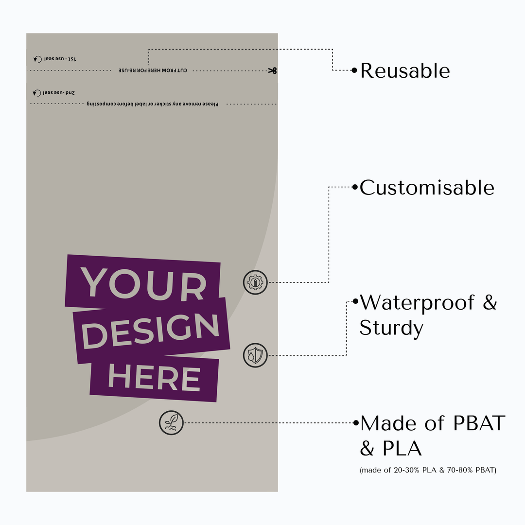 Our compostable mailers are Reusable, Customisable, Waterproof, Sturdy & made of Eco-friendly Packaging!