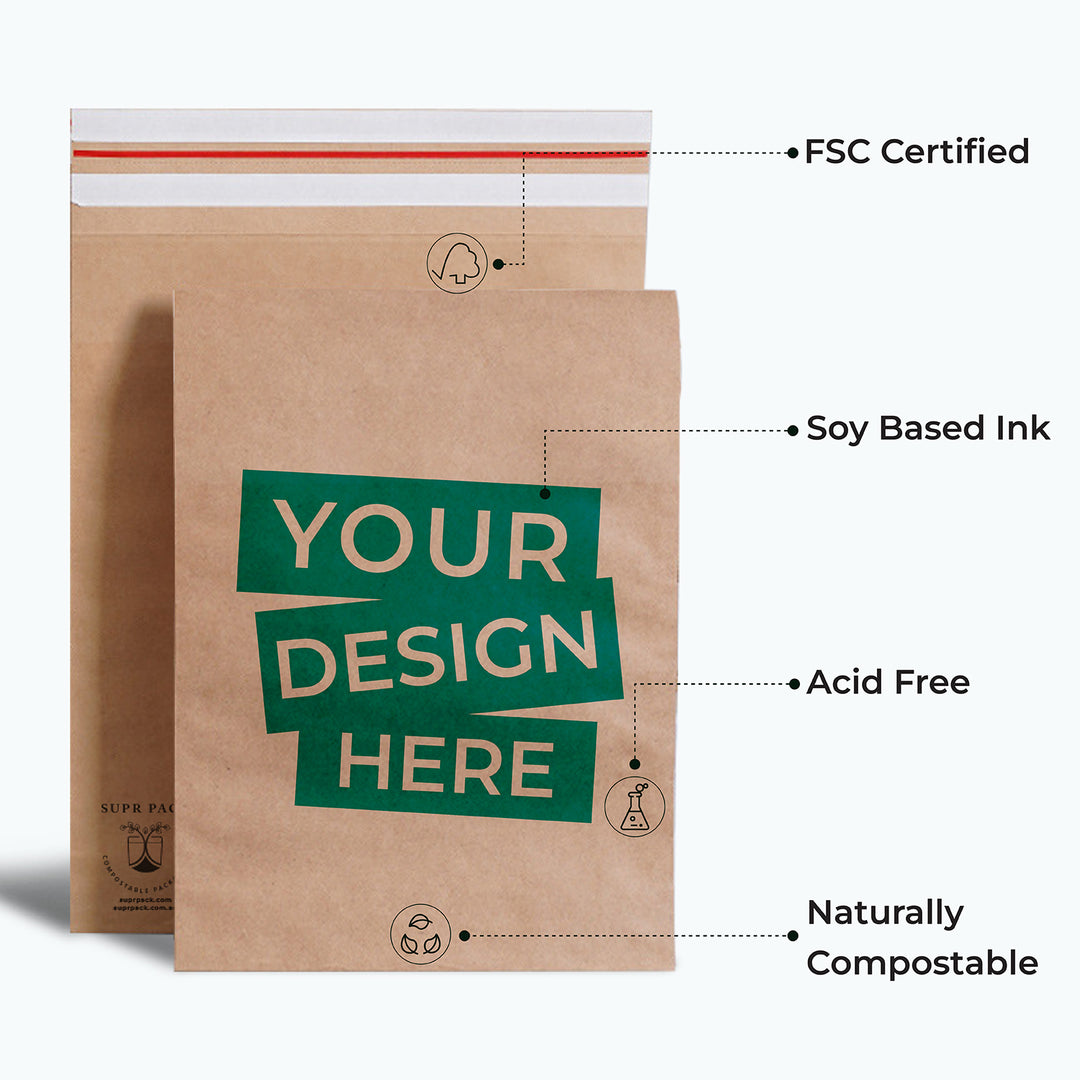 Yes, Supr Pack’s Compostable Kraft Mailers have a 10cm wide Gusset to support your products at the base.