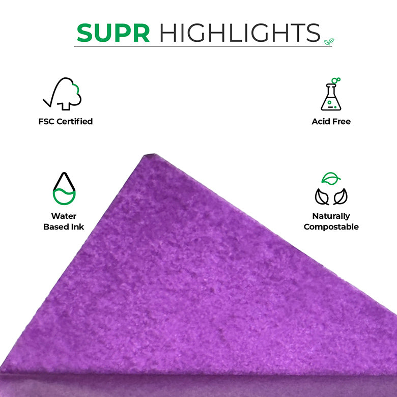 Tissue Paper from Supr Pack is FSC Certified, Acid Free, Naturally Compostable, manufactured from recycled paper and ideal for Sustainable Packaging. It can be composted in your home compost bin.