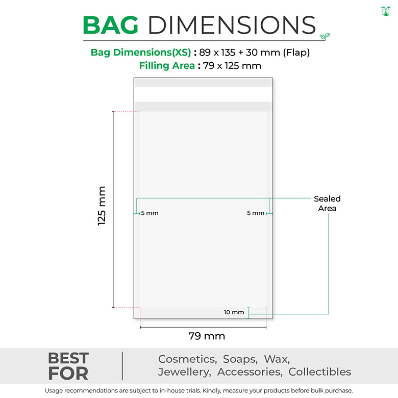 • Eco-Chic Sizes - The recyclable glassine bags are available in 7 different sizes to fit all the product packaging needs.