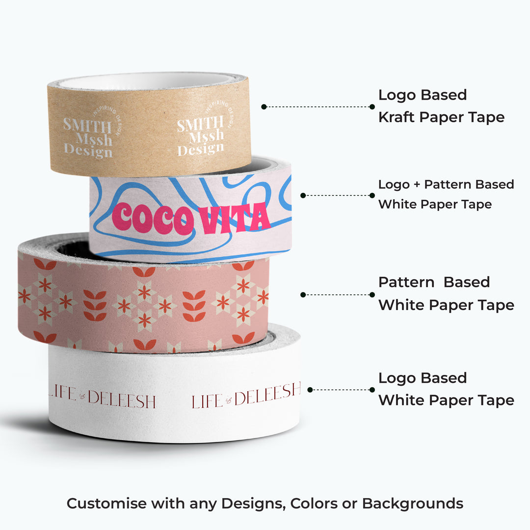 Supr Pack’s Sustainable Tape comes in two different paper options - White & Kraft Paper Stock. Long-lasting and adaptable, Custom Tape can be personalized with any pattern in any color & design and glued straight down to secure boxes and mailers or just about any product.