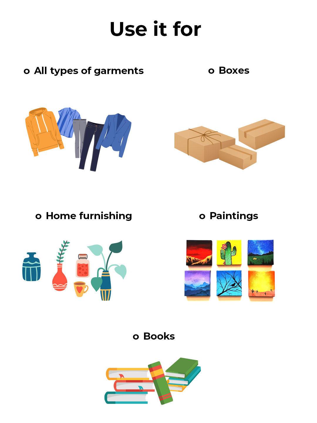 Our garment bags are versatile option to pack anything. You can not just pack garments but other products also to get protection of your products from dirt & water.